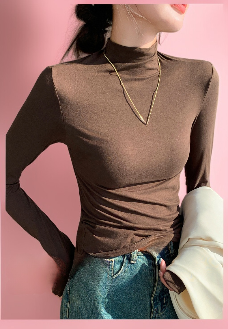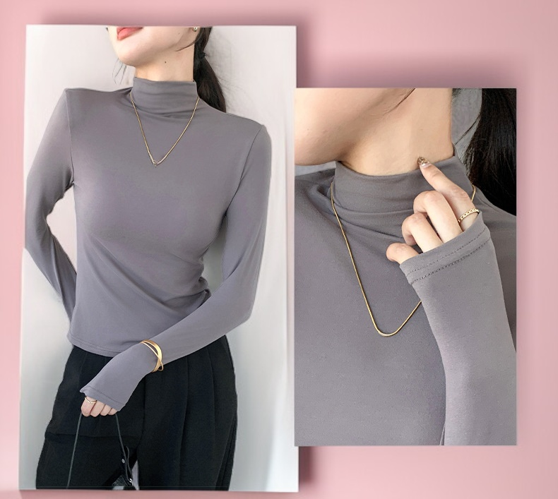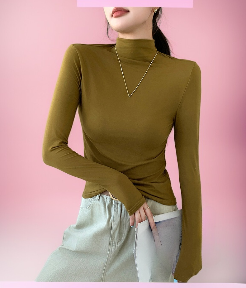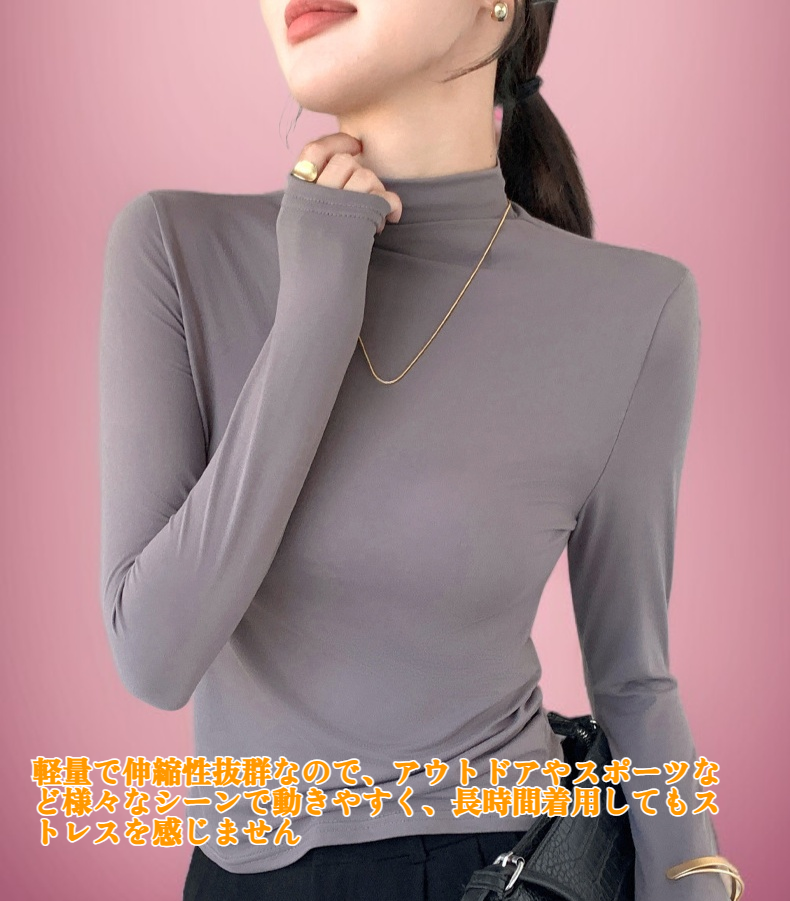 ● シンプルなデザインで、インナーとしても一枚着としても使える万能アイテム。重ね着コーデにも最適です。